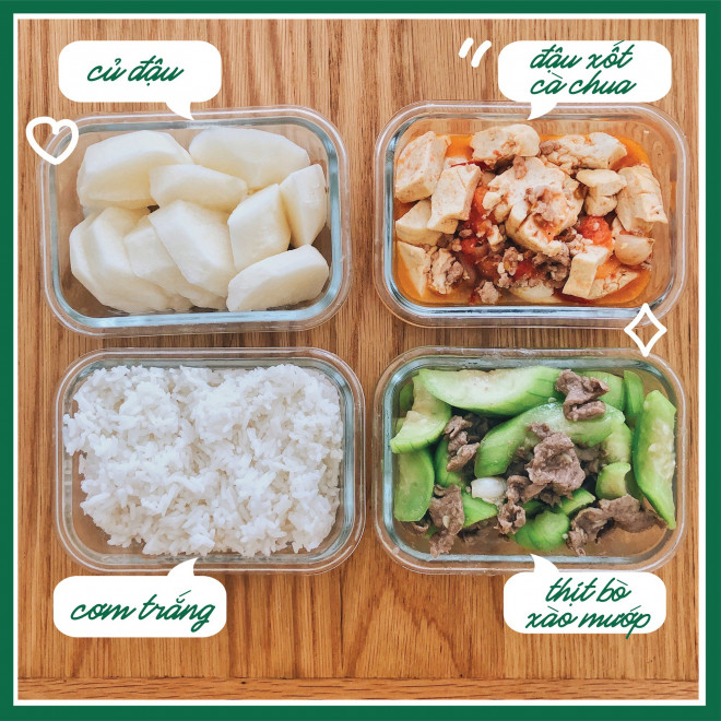 Mình vốn ngại ra ăn cơm ở ngoài, nên được ăn chuẩn bị cơm trưa như này thấy yên tâm nhất. Ngon, đảm bảo, đủ chất”. Anh Việt Nguyễn hạnh phúc, tự hào chia sẻ về vợ mình và những suất cơm đủ dinh dưỡng và đẹp mắt.