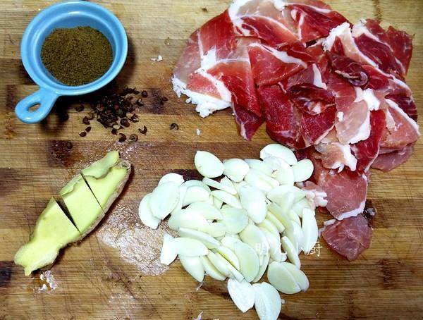 Bước 1: Thái thịt thành từng lát mỏng, để qua một bên. Tiếp tục thái tỏi và gừng thành các lát.